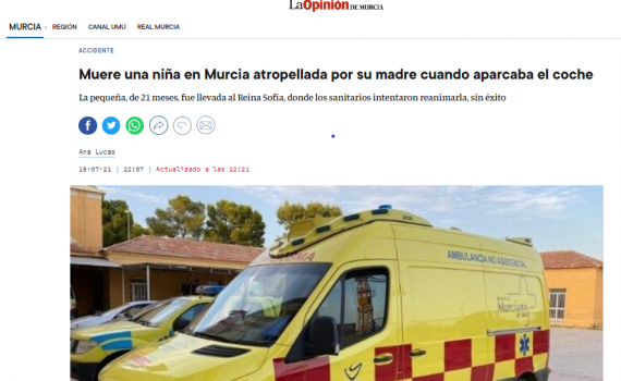 Fecha: 15 de julio de 2021 Lugar: Murcia Menores implicados: 1 (21 meses) Más información: La Opinión de Murcia