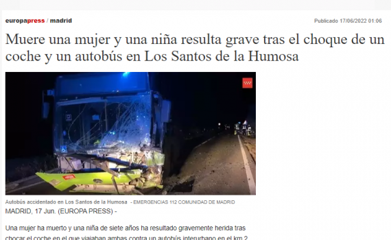 Fecha: 17 de junio de 2022 Lugar: Los Santos de la Humosa Menores implicados: 1 (7 años) Más información: Europa Press