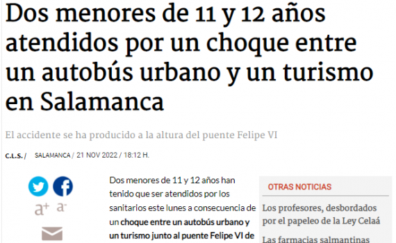 Fecha: 21 de noviembre de 2022 Lugar: Salamanca Menores implicados: 2 (11 y 12 años) Más información: La Gaceta de Salamanca