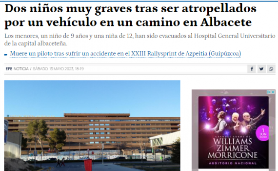 Fecha: 13 de mayo de 2023 Lugar: Albacete Menores implicados: 2 (9 y 12 años) Más información: Heraldo de Aragón