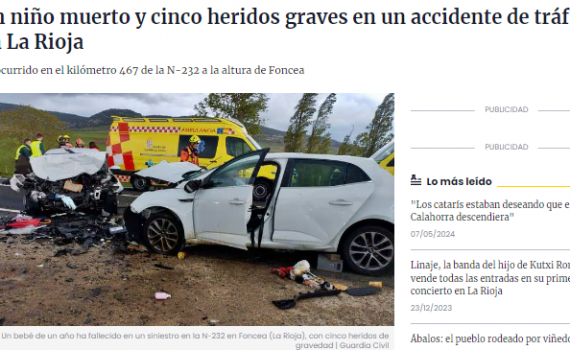 Fecha: 5 de mayo de 2024 Lugar: Foncea (La Rioja) Menores implicados: 1 (1 años) Más información: Cadena SER