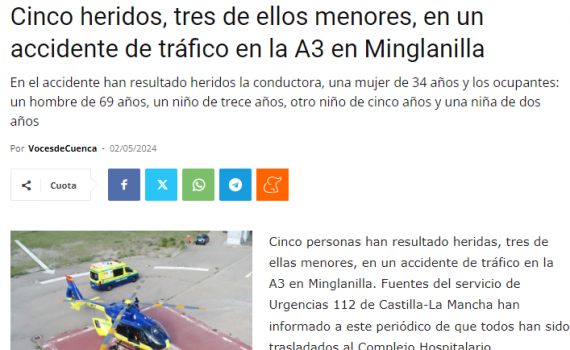Fecha: 2 de mayo de 2024 Lugar: Minglanilla (Cuenca) Menores implicados: 3 (13, 5 y 2 años) Más información: Voces de Cuenca