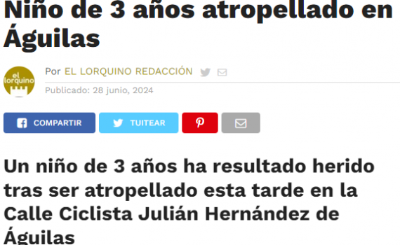 Fecha: 28 de junio de 2024 Lugar: Águilas (Murcia) Menores implicados: 1 (3 años) Más información: El Lorquino