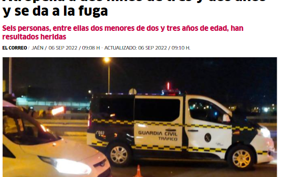 Fecha: 6 de septiembre de 2022 Lugar: Valdepeñas (Jaen) Menores implicados: 2 (2 y 3 años) Más información: El Correo de Andalucía