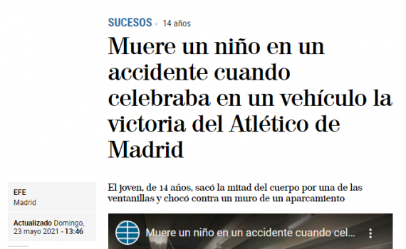 Fecha: 6 de febrero de 2021 Lugar: Miranda de Ebro (Burgos) Menores afectados: Un menor de 13 años, fallecido por atropello Más información: Diario de Burgos